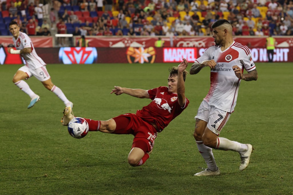 In the 83′ Wiki Carmona is credited with the go-ahead goal but the video replay shows it hit a defender and took a crazy bounce to the goal. For now, it stands as Wiki’s first goal but will probably be changed to an OG. The assist goes to Frankie Amaya on the goal, the Red Bulls lead 2 – 1.