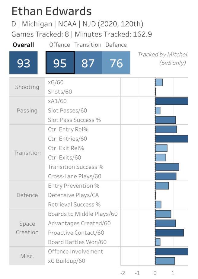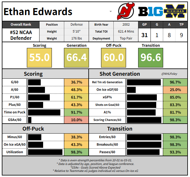 Coming in at #10 in my latest “2025 Spring Prospect Rankings”, Edwards posted career highs in goals (5), power-play goals (4) assists (16), and points (21) this season with Michigan.