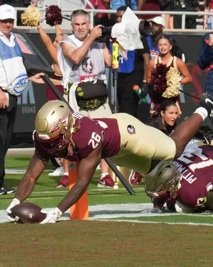 Florida State’s rushing attack proved unstoppable, accumulating 230 yards on 49 carries while four different players found the end zone. Wide receiver Micahi Danzy provided the most explosive moment with a 32-yard touchdown run that gave FSU a 14-7 lead in the second quarter.