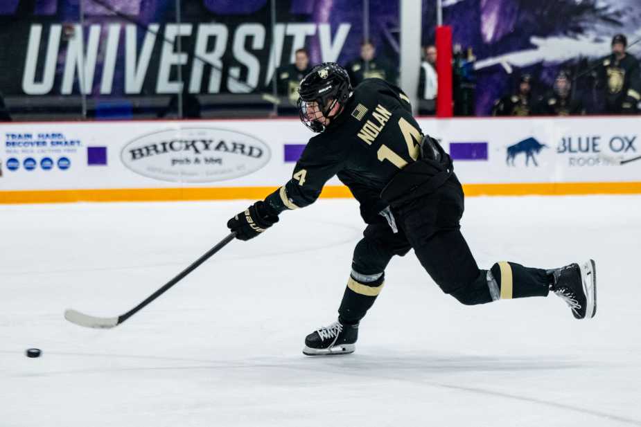Army would cut the lead to one with under a minute left. Senior defenseman Owen Nolan would take a Barron Woodring pass from center ice, power past the Purple Eagles’ defense, and finish five-hole on freshman goaltender Tomas Anderson to get the Black Knights on the board.